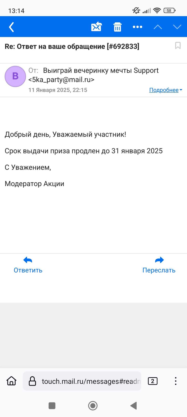 Чуть выше Скрин, с какой ответили почты