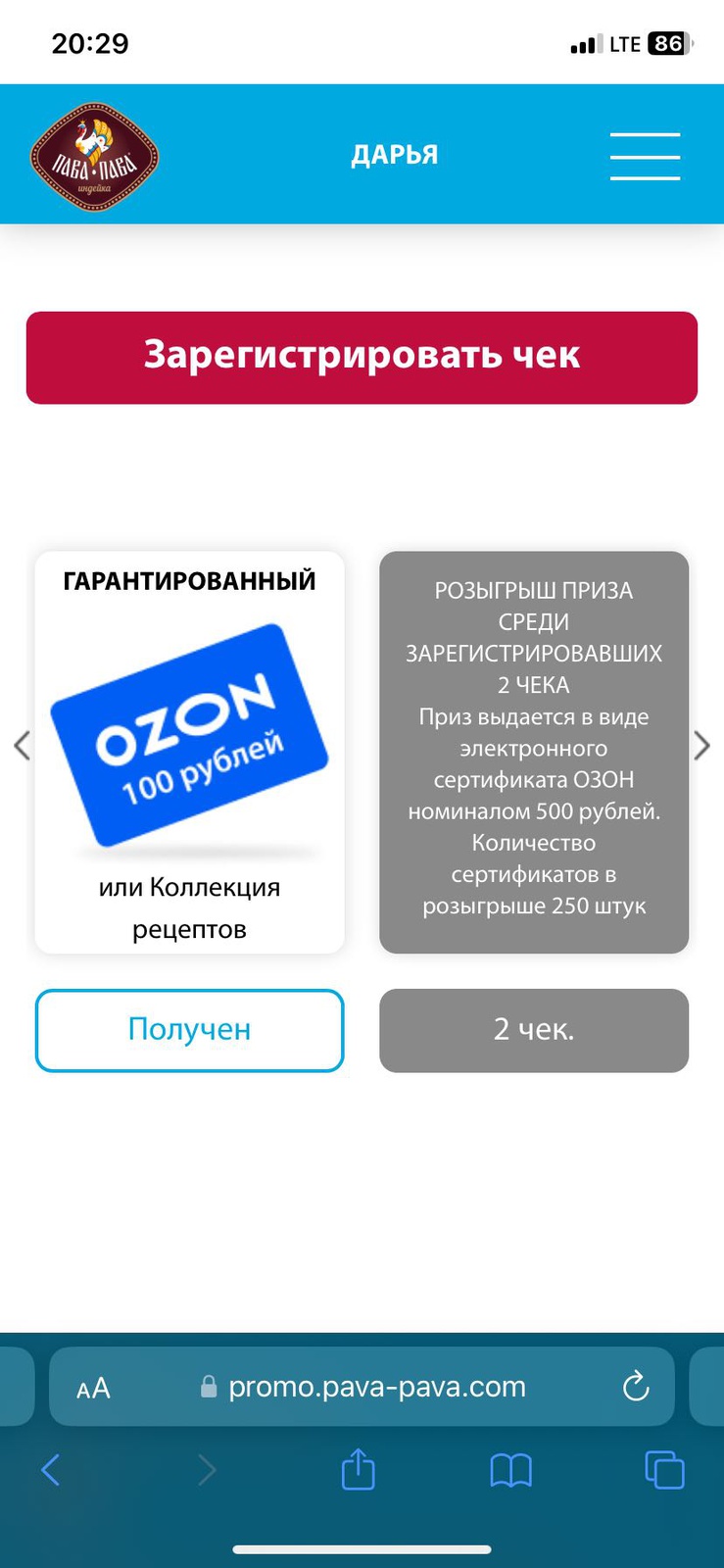 - Регистрируйте чеки на сайте акции или в чат-боте Telegram - @Pava_Pava_promo_bot;