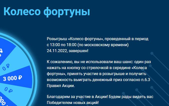 В любом случае - все участники получили кешбек, а колесо было вишенкой на торте. Если у Вас не получилось, то это не значит, что орги - уки