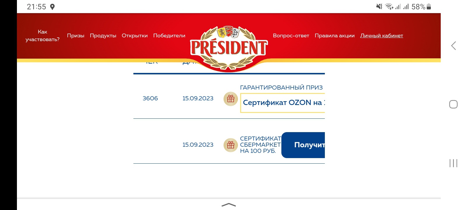 - Приз № 2 – Электронный сертификат OZON на 100 рублей;