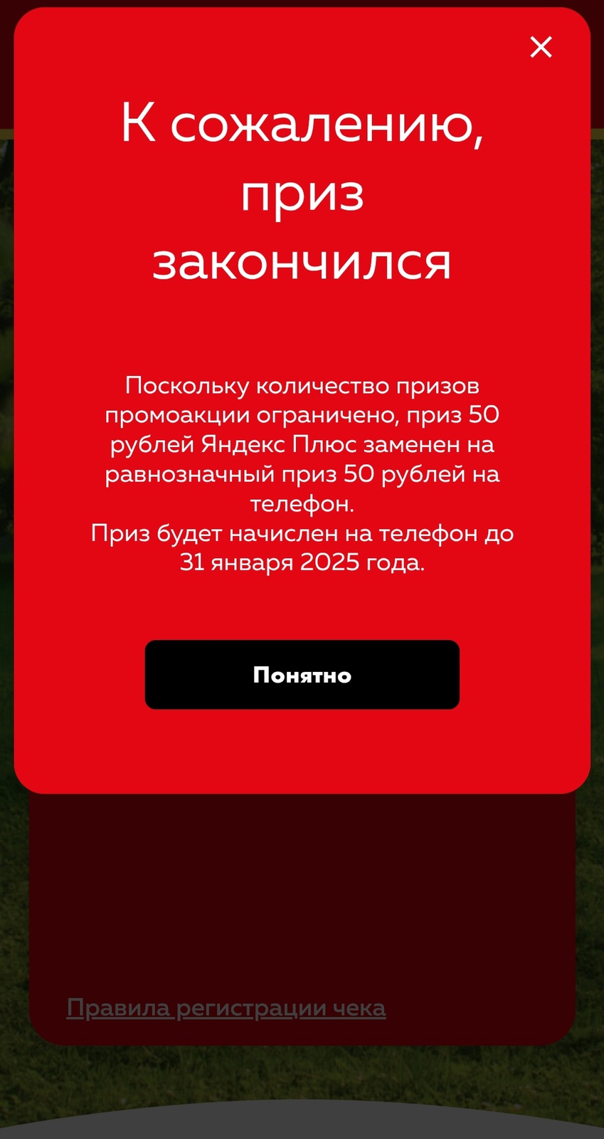 • Как собственно и промокод на Яндекс , а один так вообще украли , написали мне что призы закончились , хотя после того что украли , пару полтинников всё же давали , вообщем мутная акция с такими же организаторами .
