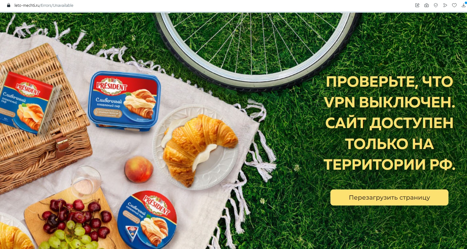 Покупайте плавленный сыр President в количестве от 2-х штук, регистрируйте чек, выигрывайте гарантированные призы и участвуйте в розыгрыше летних удовольствий. Главный приз - лето мечты!