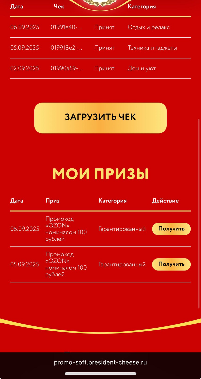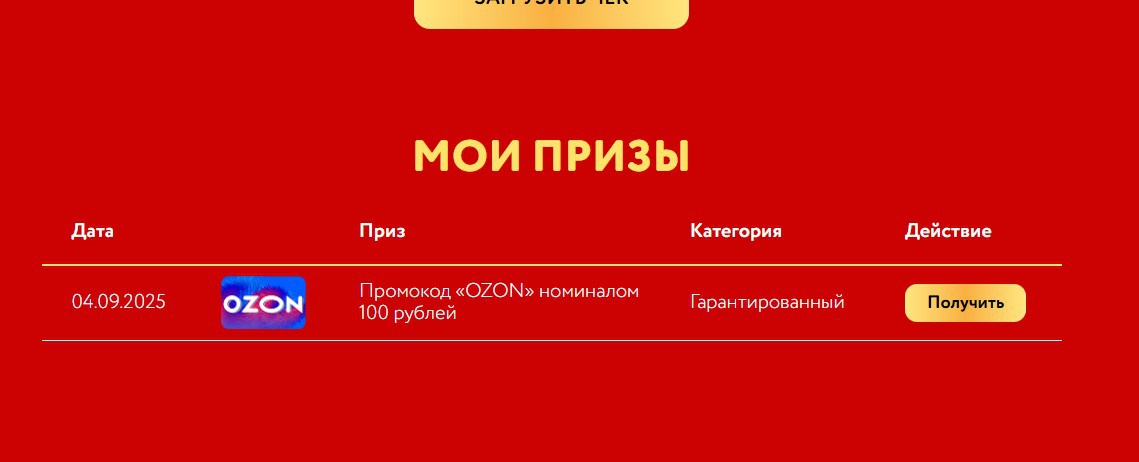- Гарантированный приз (за регистрацию чека):