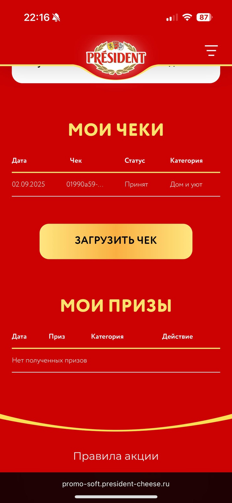 Покупайте сыр с благородной плесенью President, регистрируйте чек, получайте гарантированный приз и участвуйте в розыгрыше призов.