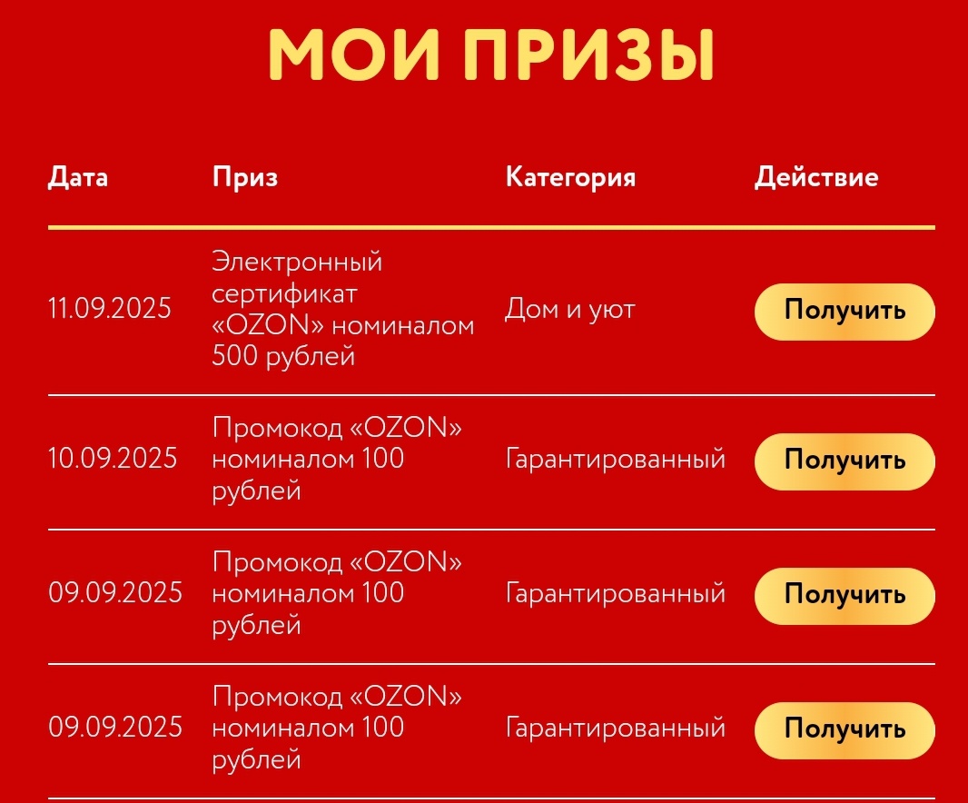 - Гарантированный приз (за регистрацию чека):