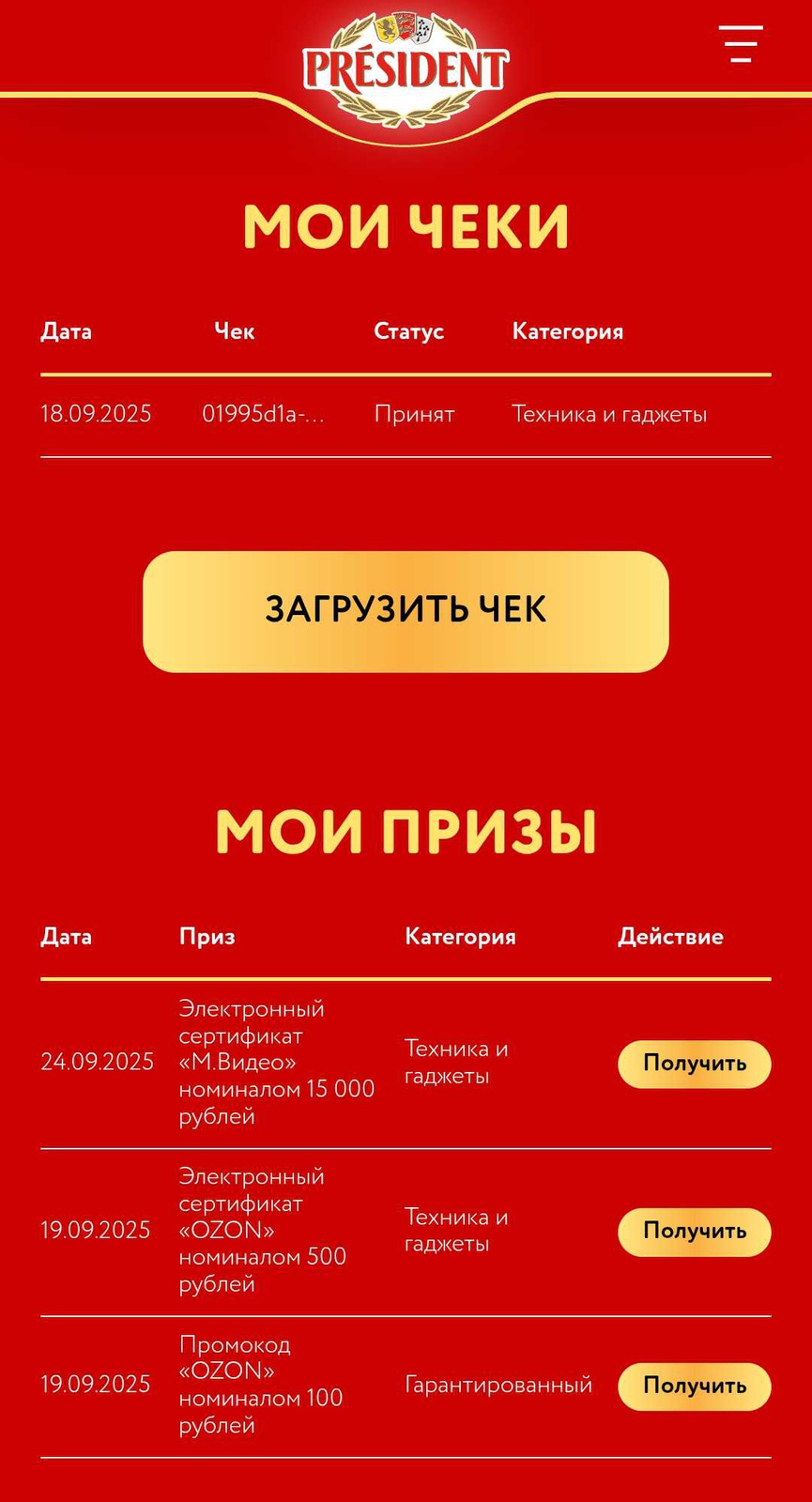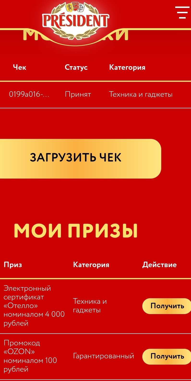 Покупайте сыр с благородной плесенью President, регистрируйте чек, получайте гарантированный приз и участвуйте в розыгрыше призов.