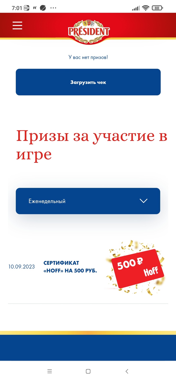 - Купите 2 упаковки плавленого сыра Président, из списка продукции, участвующей в акции;
