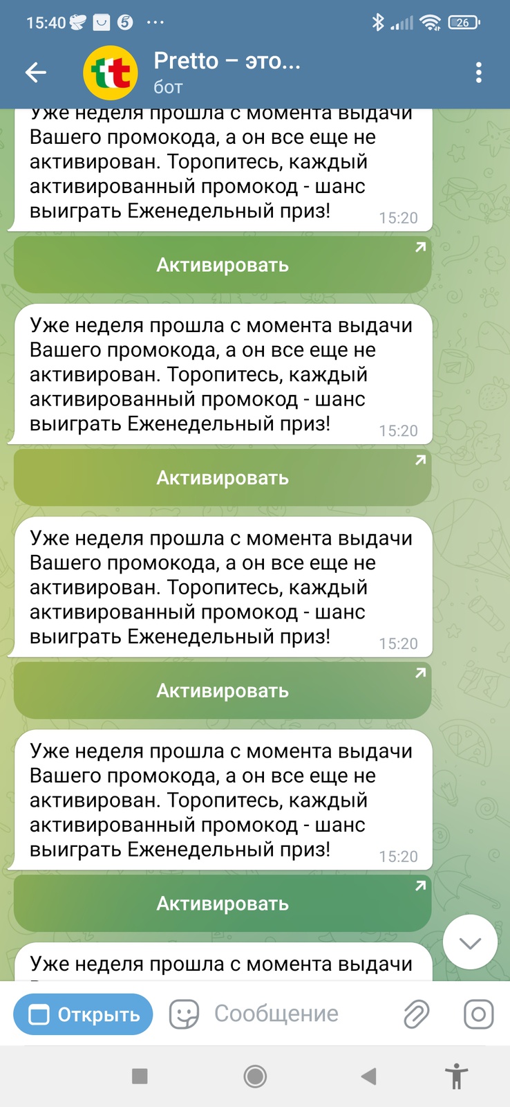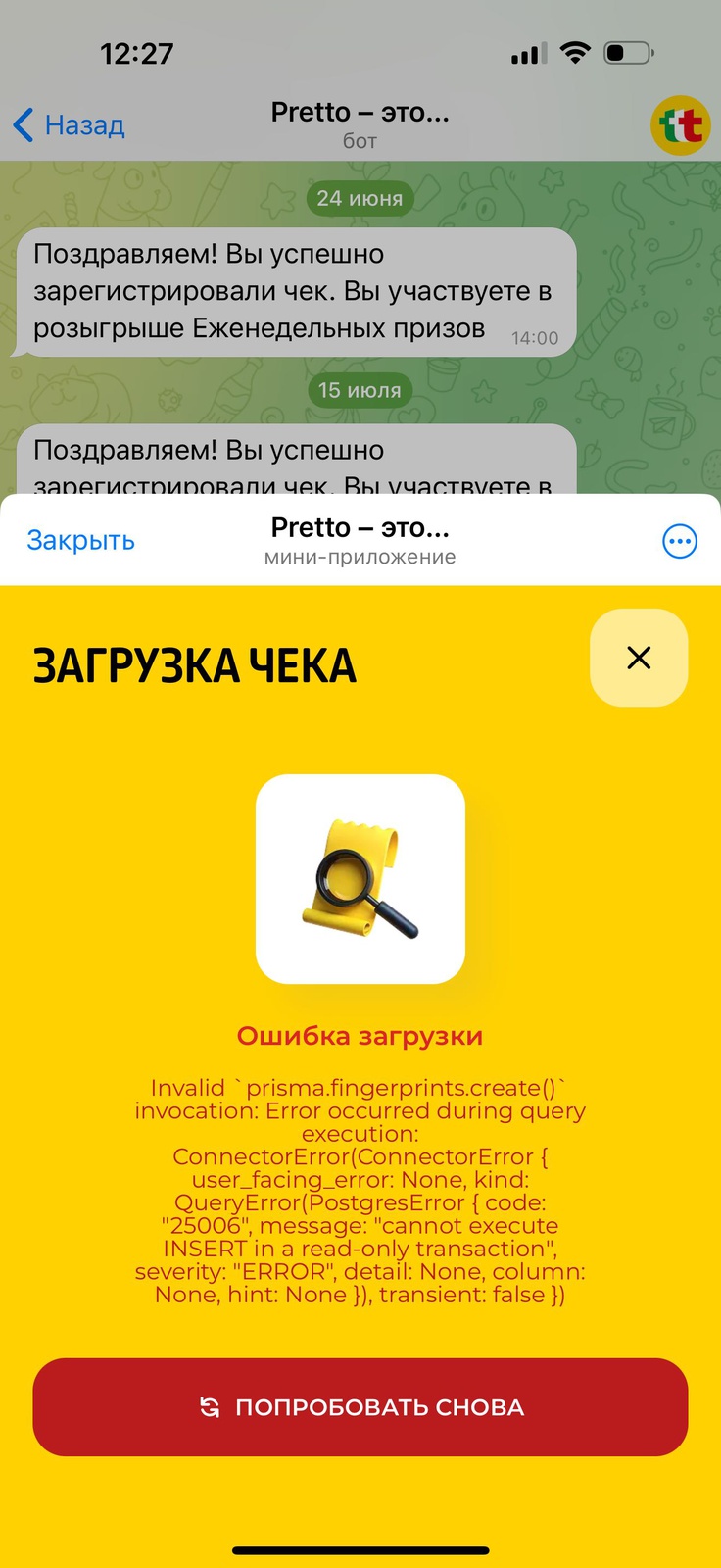 2. Загружайте чеки на сайте акции или в Telegram боте - @pretto_etto_bot;