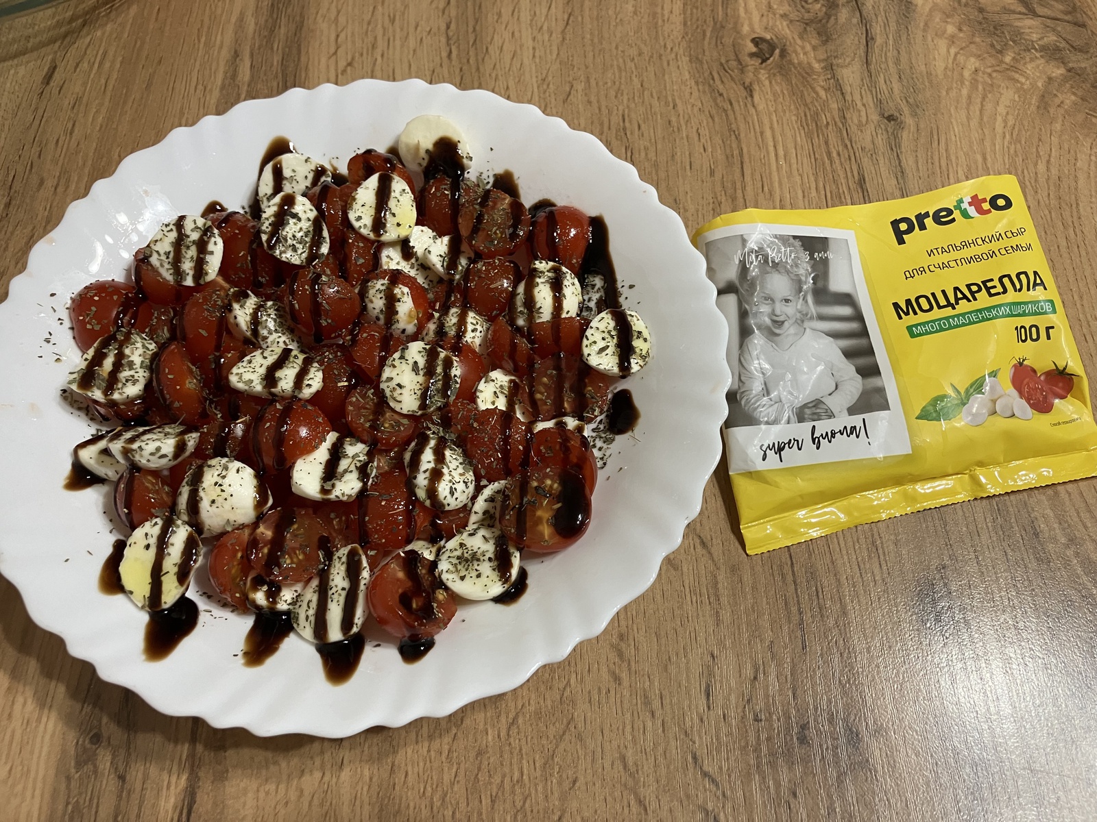 А у нас любимый салат - капрезе: черри, моцарелла, базилик, оливковое масло и бальзамический соус - быстро и вкусно)