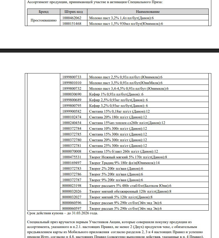 - Покупайте продукты Простоквашино от 2 шт. в магазинах «Магнит» с QR-кодом из приложения. За каждые 2 товара-участника в чеке начисляется 1 шанс в розыгрыше;