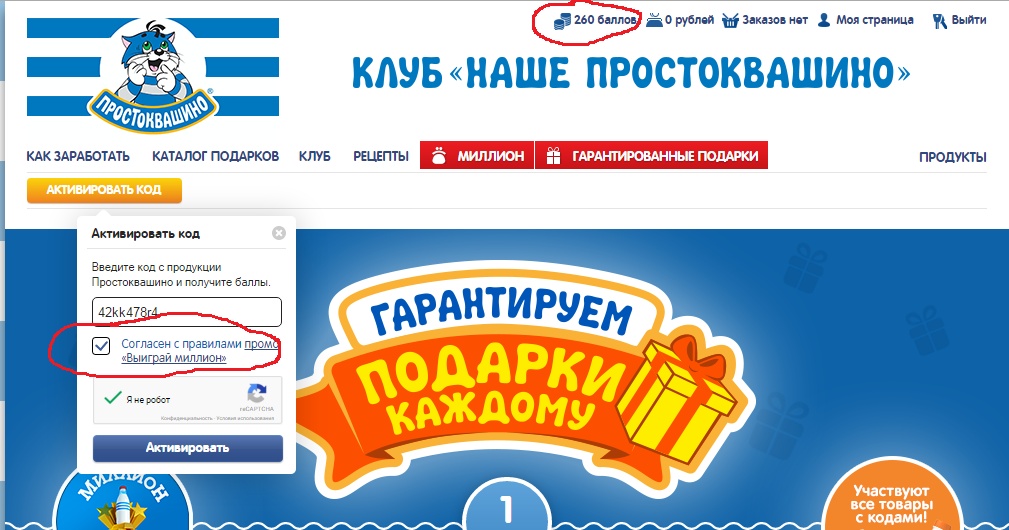 - Зарегистрируйте 5 кодов с упаковки продуктов «Простоквашино»;