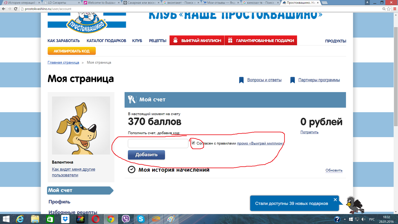 только вбиваю я не на странице самой акции с этими подарками, как наталия (у меня там галочка вообще не появляется), а тут