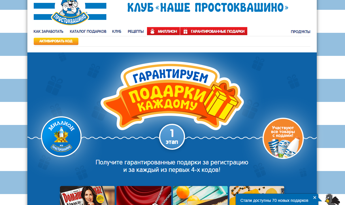- Зарегистрируйте 5 кодов с упаковки продуктов «Простоквашино»;