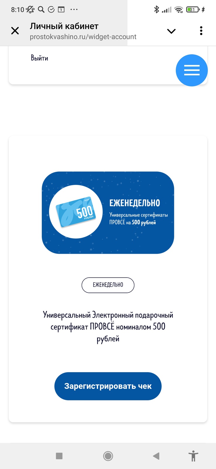 - Регистрируйте чек на сайте акции;