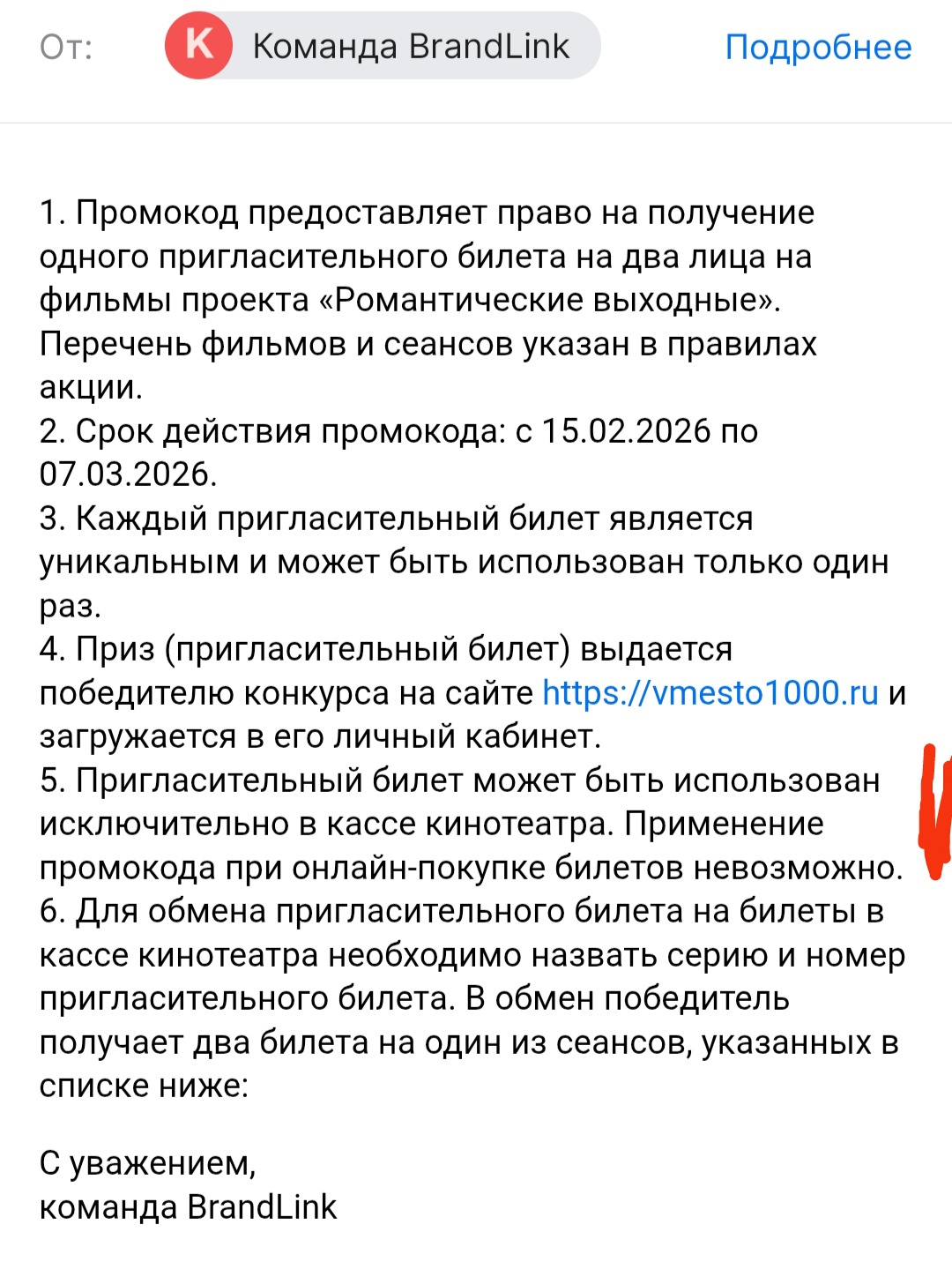 - Получите кешбэк и шанс выиграть призы: билеты в кино на романтические показы и сертификат в Золотое Яблоко.