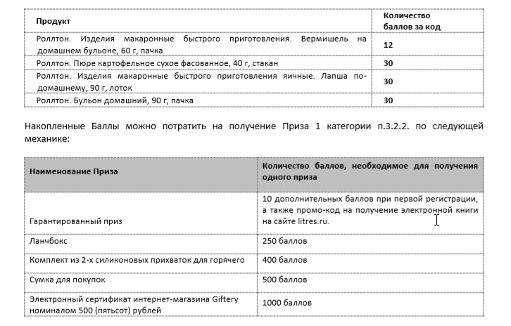3.2.1.Гарантированные призы при регистрации в Акции: 10 бонусных баллов, зачисляемые на личный счет Участника Акции. Каждый победитель может получить не более одного Гарантированного приза за регистрацию.