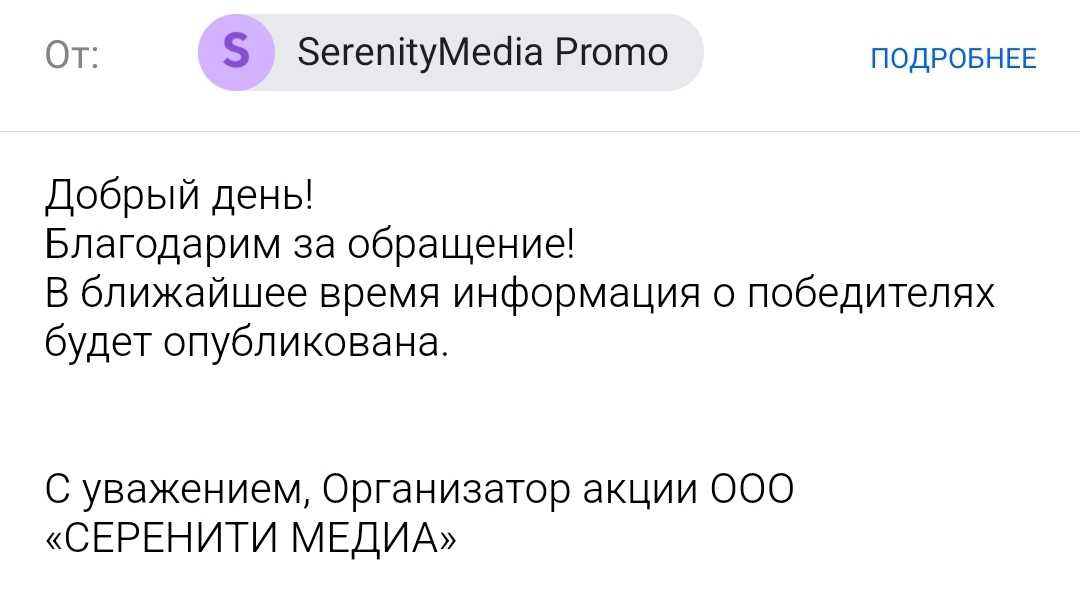 Организатор акции: ООО «СЕРЕНИТИ МЕДИА»