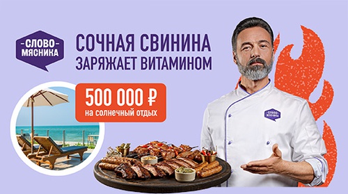 Покупайте продукцию Слово Мясника, регистрируйте чек, копите "Витамины", участвуйте в розыгрыше 500 000 рублей на солнечных отдых и других призов. Сочная свинина заряжает витамином!