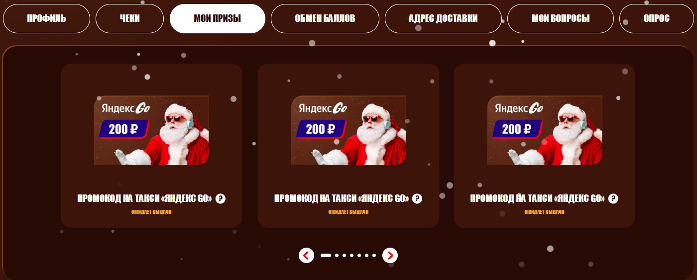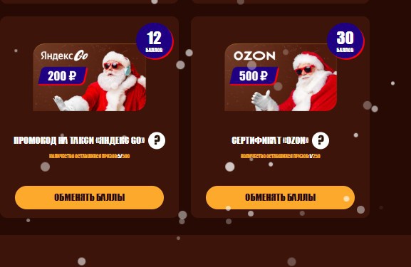 - 12 баллов - Сертификат на такси «Яндекс GO» 200 руб. - 1000 шт.;