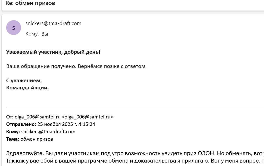 Расписку на призы отправим в конце акции, как будут известны все выигрыши на участника.