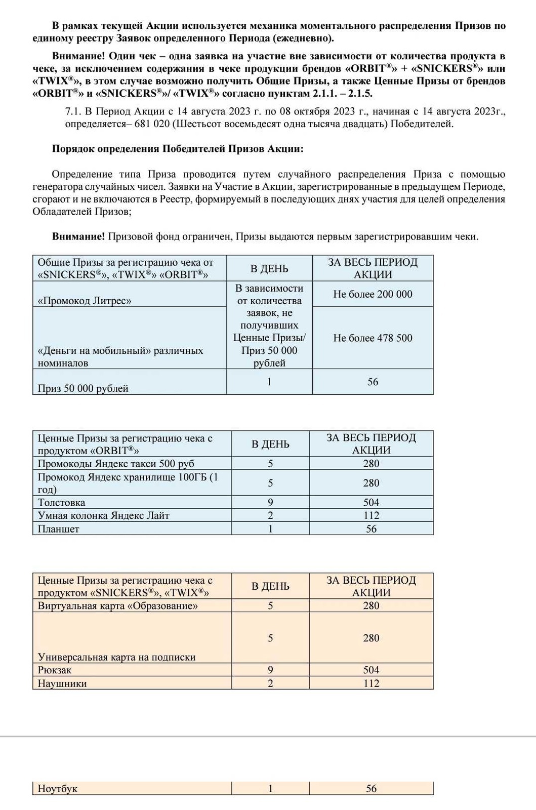 - «Ценные Призы за регистрацию чеков продукции «SNICKERS®», «TWIX®»: