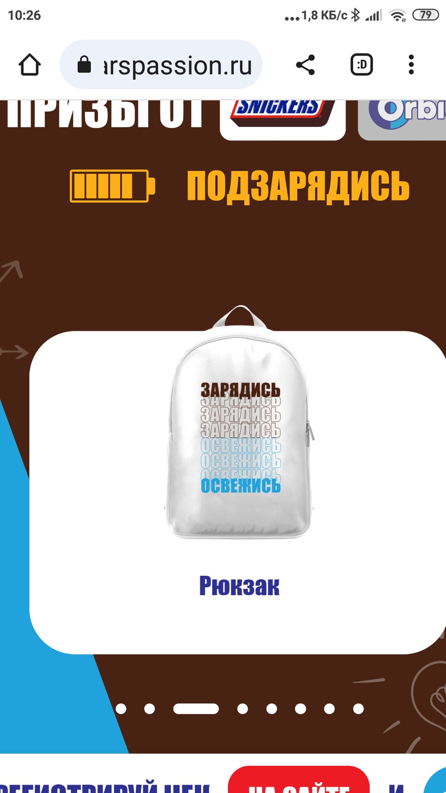 Покупайте шоколадные батончики Snickers, Twix или жевательную резинку Orbit с 14.08.2023 по 08.10.2023, зарегистрируй чек на сайте акции и участвуйте в розыгрыше призов.