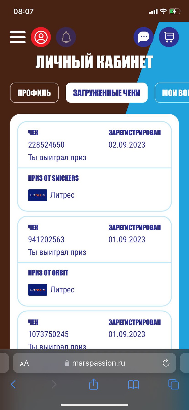 - Зарегистрируйте чек на сайте акции;