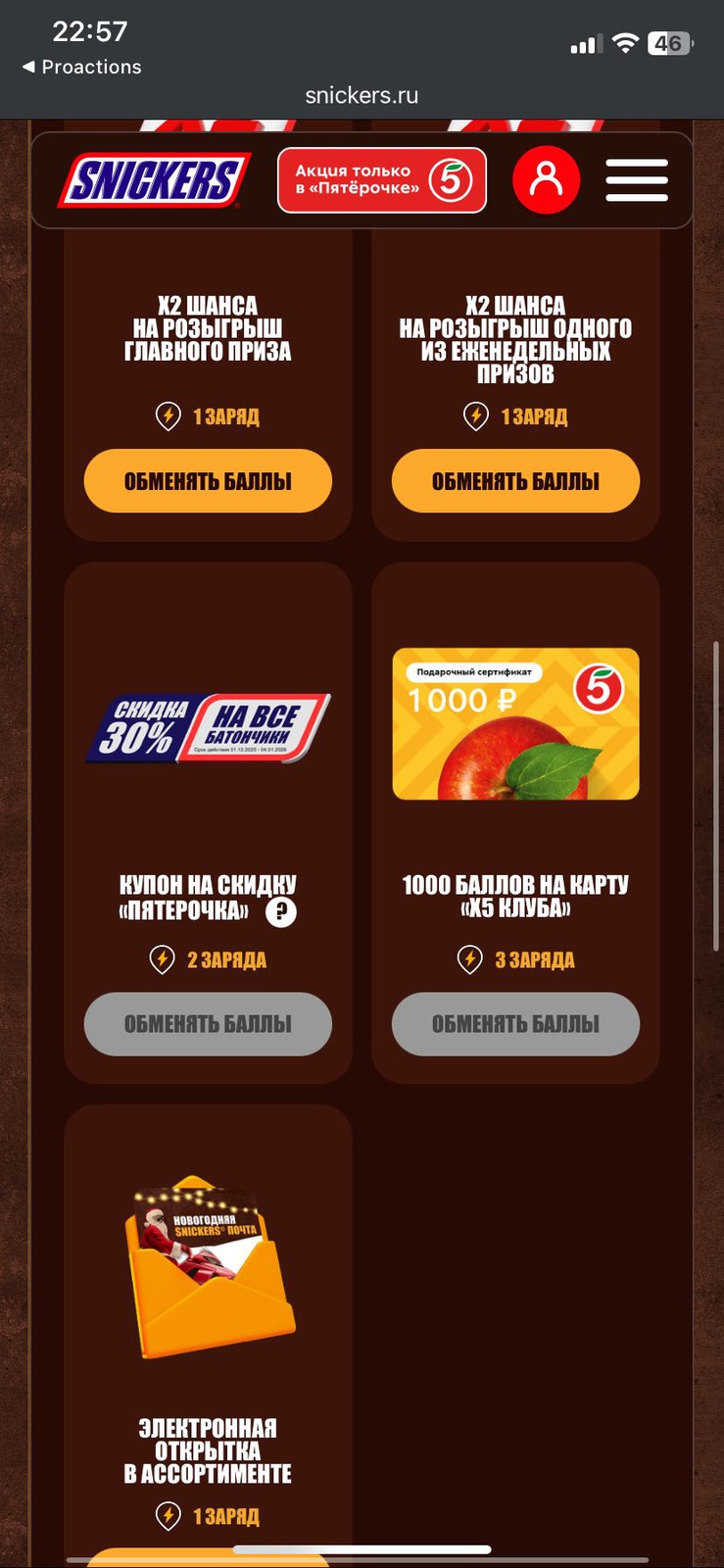 - 1000 баллов на карту «Х5 Клуба» - 2000 шт.