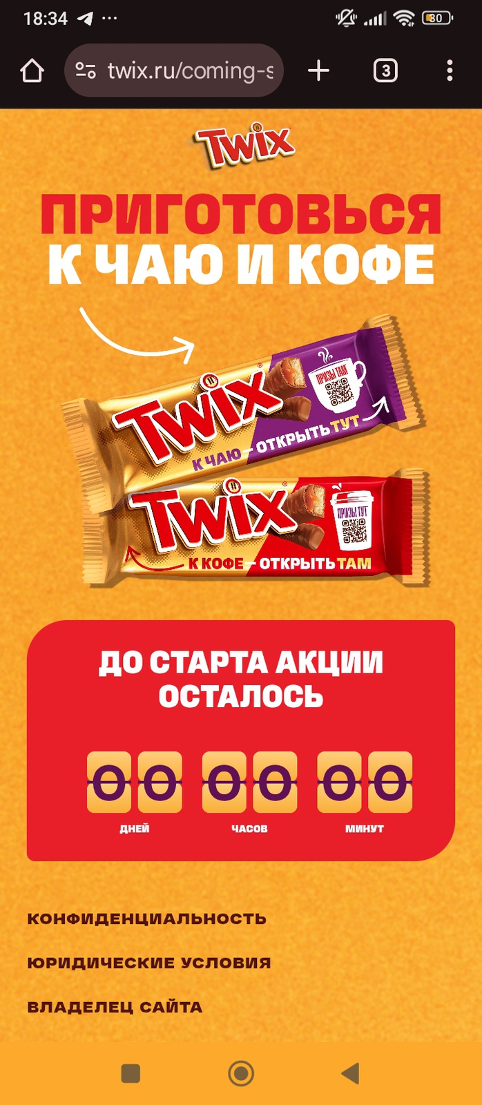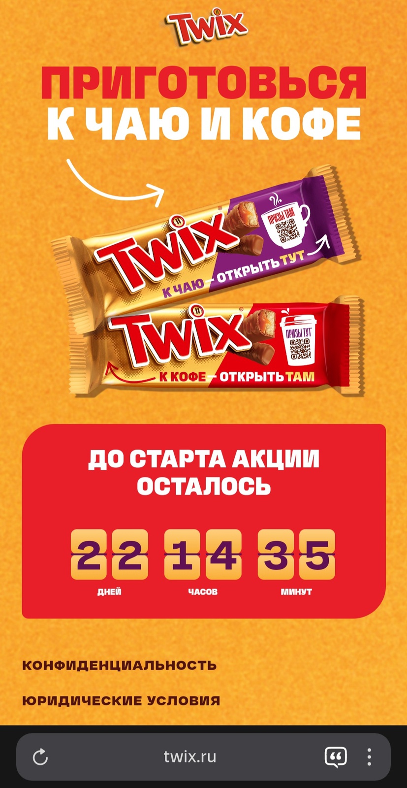 Еще на той неделе, при переходе по qr-коду с батончика твикс или просто при вбивании сайта акции твикс.ру, был автоматический переход на сникерс.ру. Я не придала этому значение и зарегистрировала там свой чек с твиксами. Логично, что отменили.😄