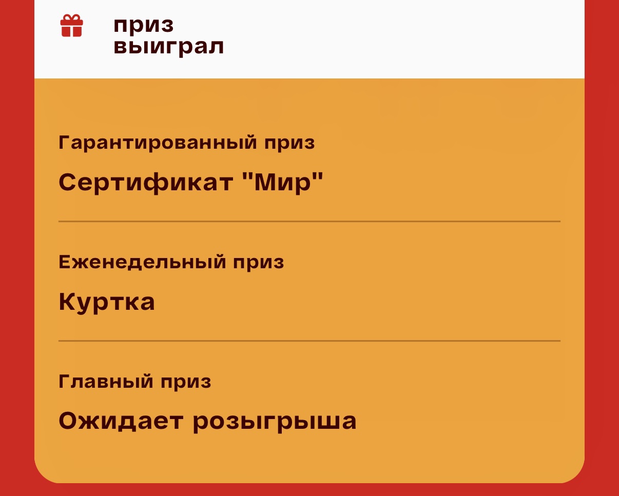 - Гарантированный приз за регистрацию чека: