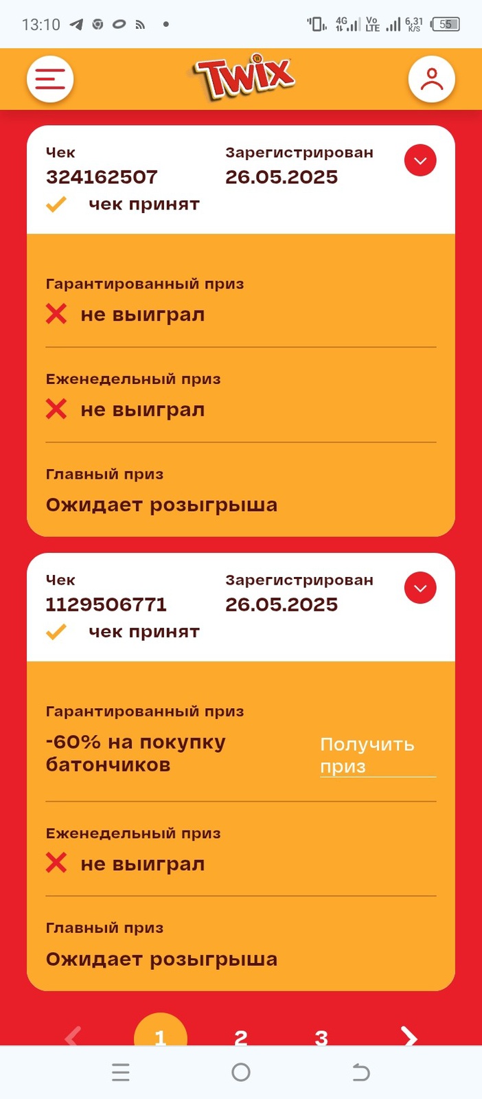 С 21 апреля 2025 покупайте шоколадные батончики Twix, регистрируйте чеки и выигрывайте призы.