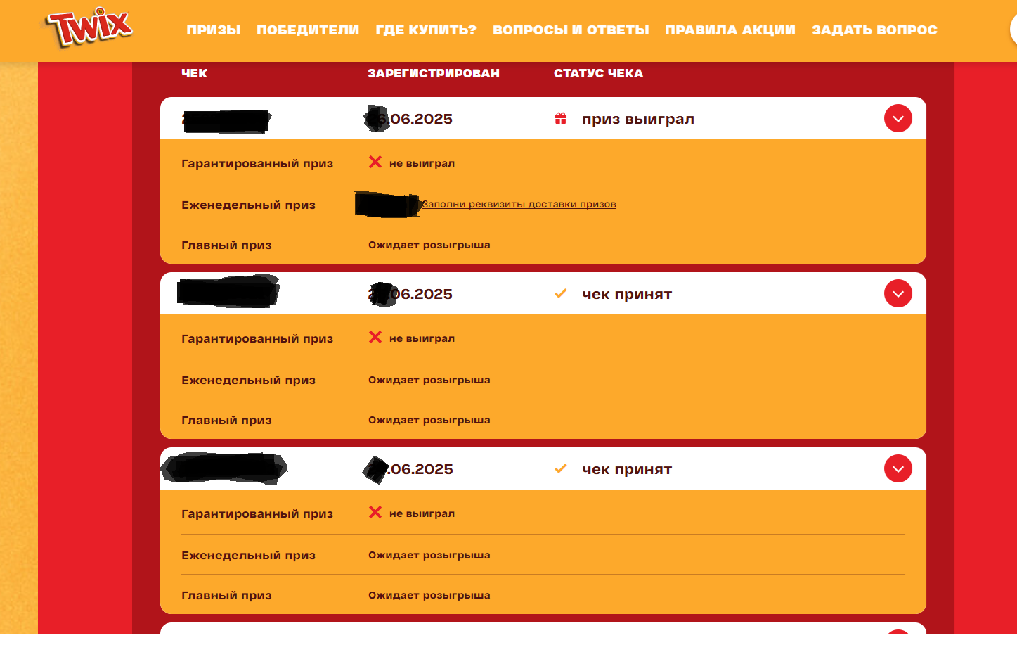 С 21 апреля 2025 покупайте шоколадные батончики Twix, регистрируйте чеки и выигрывайте призы.