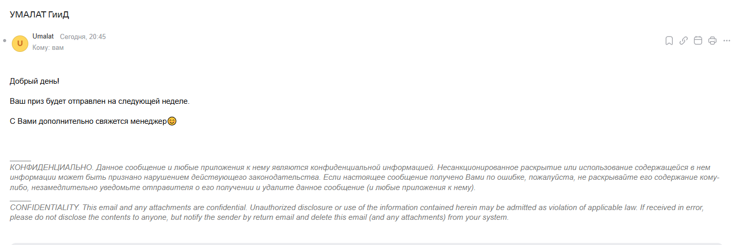 - После нажатия Участник автоматически участвует в розыгрыше Приза;