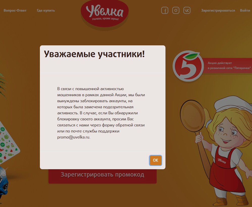 В связи с повышенной активностью мошенников в рамках акции «Готовим и выигрываем призы», мы были вынуждены заблокировать аккаунты... То же самое касается и списанных баллов - это временное явление.