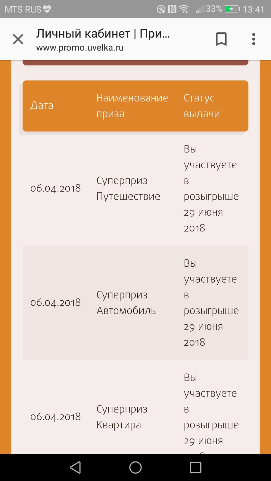 - Зарегистрируй коды с наклеек на сайте promo.uvelka.ru получи призы и стань участником розыгрыша суперпризов!