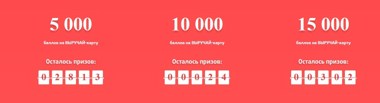 - 5 000 баллов на Выручай-карту - 10 000 шт.