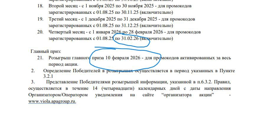 - Срок совершения покупок Продукции и регистрация на Сайте акции для участия в розыгрыше призов: с 1 августа 2025 г. и по 28 февраля 2026 г. (включительно).