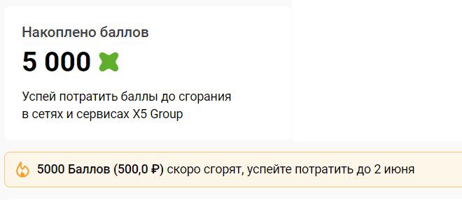 - Гарантированно за регистрацию первого чека вы получаете 500 баллов на вашу карту Х5 Клуба" (8 887 шт.);