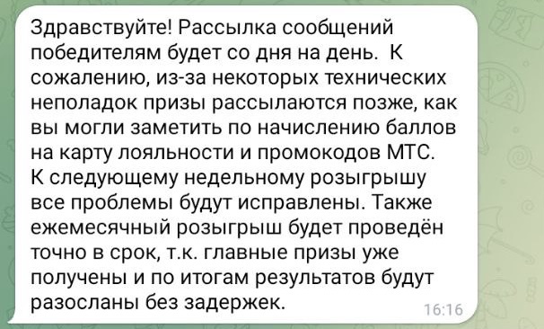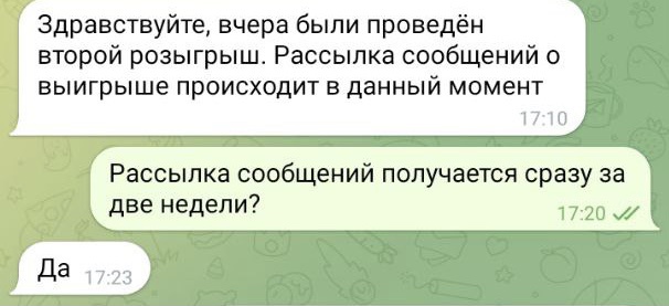 Всем победителям рассылаются сообщения в телеграм. Список победителей нигде опубликован не будет.