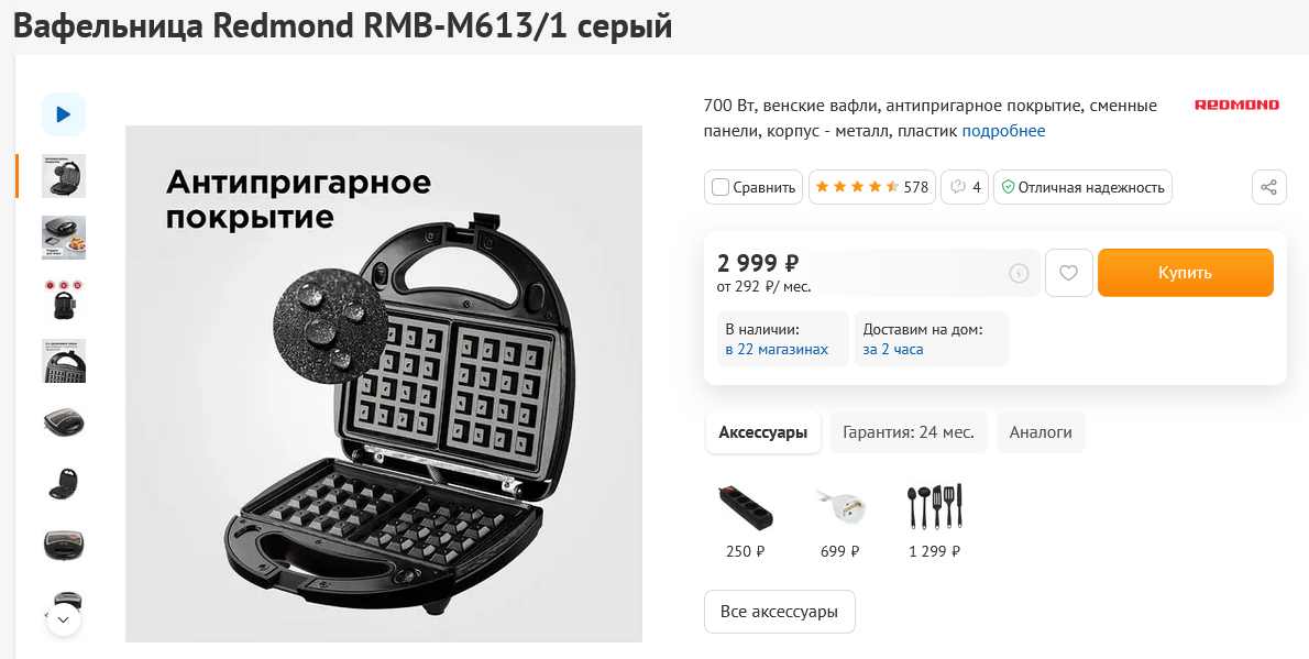 - Сертификат Redmond на 3 000 рублей (884 шт.);
