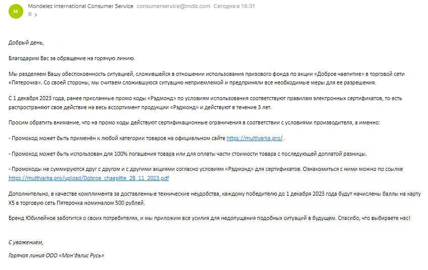 - Промокоды не суммируются друг с другом и с другими акциями согласно условиям «Рэдмонд» для сертификатов.