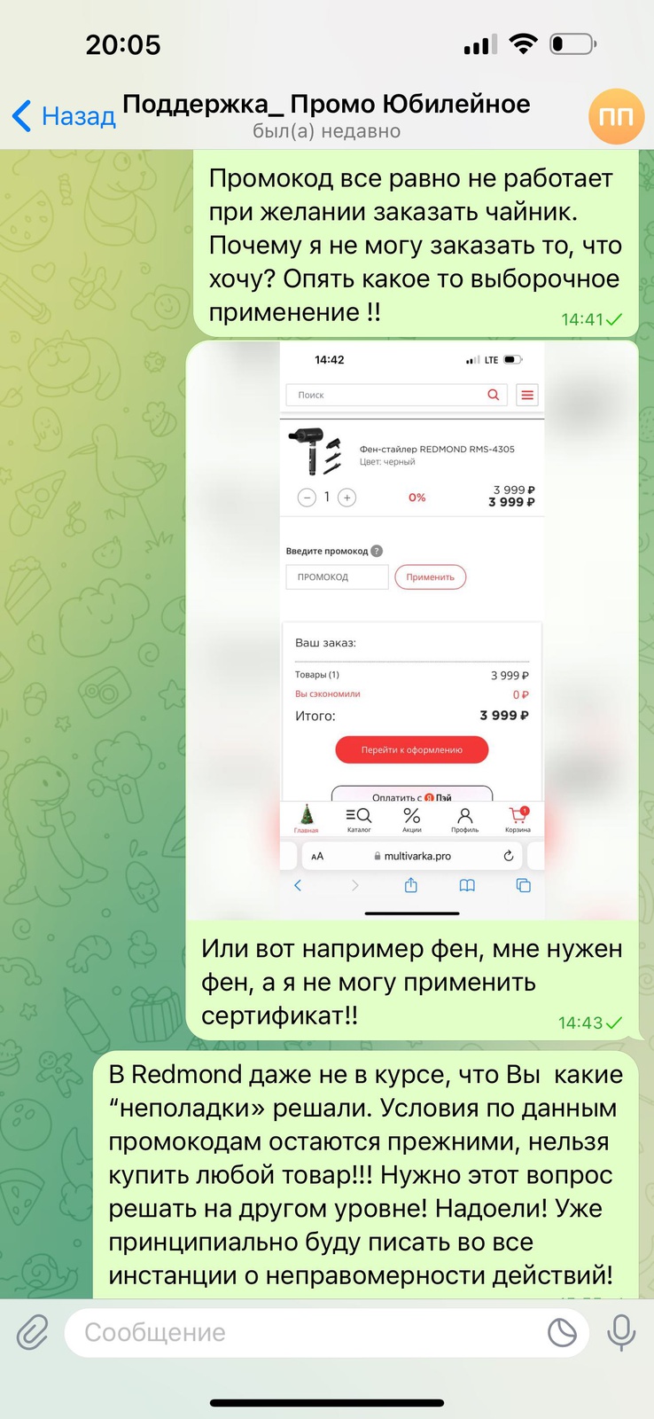 Обрадовалась, думала что сейчас технику бутовую куплю в новый дом. А вот не тут то было, сертификаты упорно не срабатывали. Оператор Связного ответил, что только на цифровую технику можно купить по сертам, распоряжение руководства. Во дела! Начала писать на их официальной странице (Связного), что их подарочные сертификаты равноценны фантикам, так как купить на них толком ничего нельзя, что противоречит закону, ведь сертификат должен быть равен сумме денежных единиц, которые можно обменять на товар. А тут явное нарушение. Ещё отзыв на Отзовике накатала, благо что давно состою в тех рядах. В итоге со мной связался представитель "Связного", сначала в Отзовике, перенёс диалог в ВК.... Итог: выдали деньги из кассы, в одном из отделений сети "Связной" под роспись.