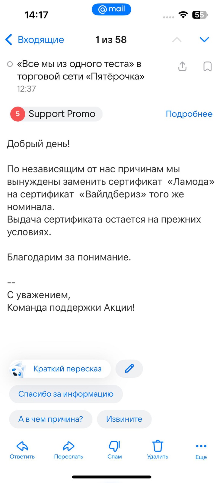 Но все маленькие пачки закончились в 3х ближайших магазинах и не по моей вине.