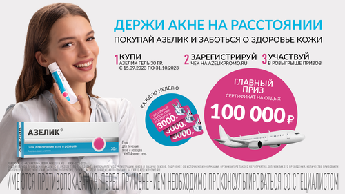 Стимулирующее мероприятие «Держи акне на расстоянии с гелем Азелик!» проводится в рамках рекламной кампании Организатора и направлено на привлечение внимания к товару Организатора, формирование или поддержание интереса к нему и его продвижение на российском рынке.