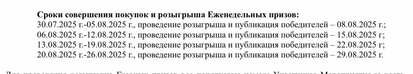 - Период участия в Мероприятии: с «30» июля 2025 года по «26» августа 2025 года (включительно).