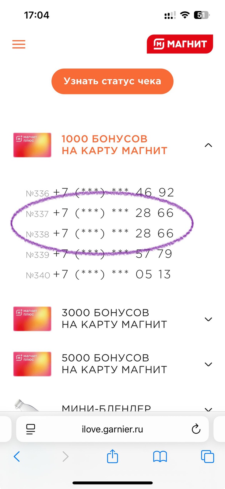 - Регистрируйте чеки на сайте или в боте https://t.me/garnier_magnit_bot;