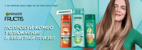 С 9 апреля 2025 года покупайте продукцию Fructis с картой Магнит Плюс, регистрируйте чек на сайте и участвуйте в розыгрыше призов.