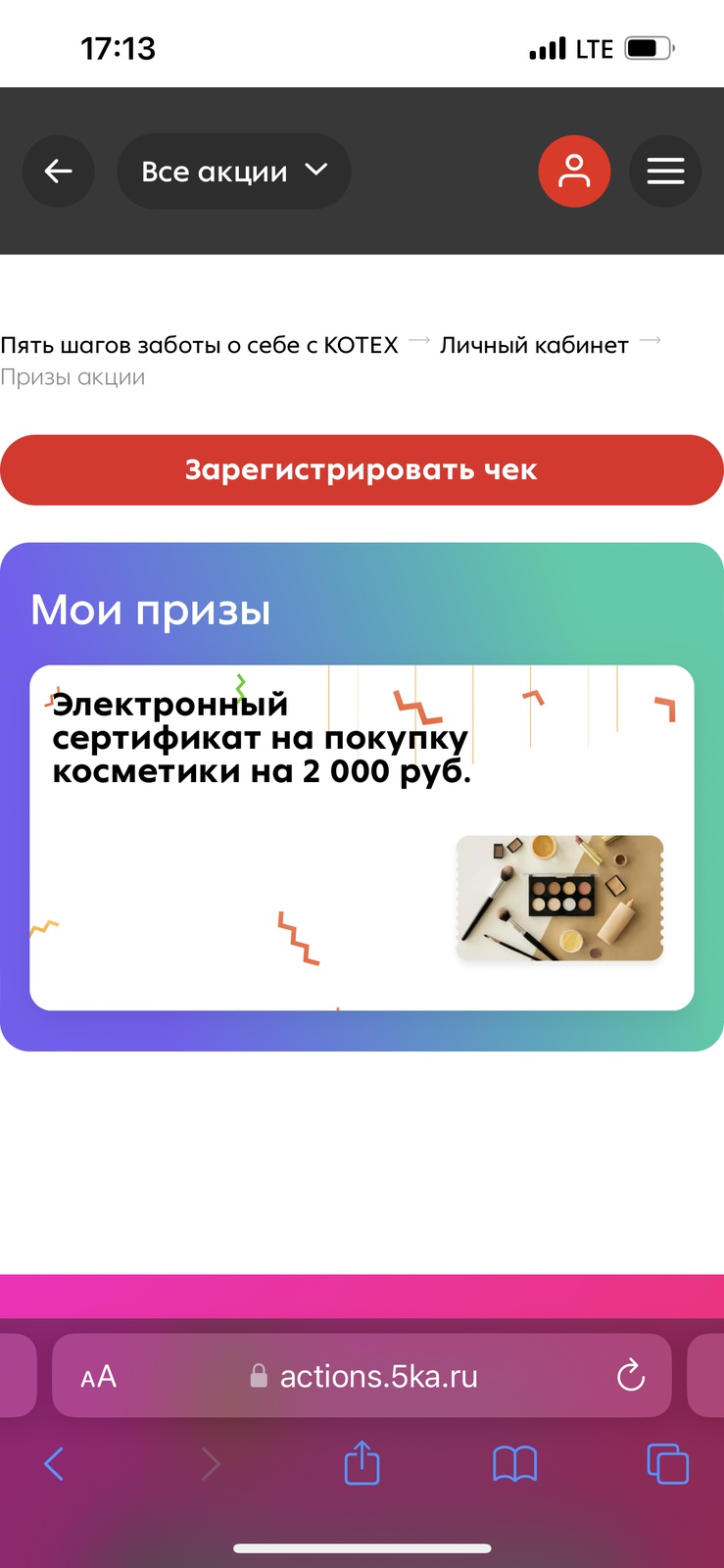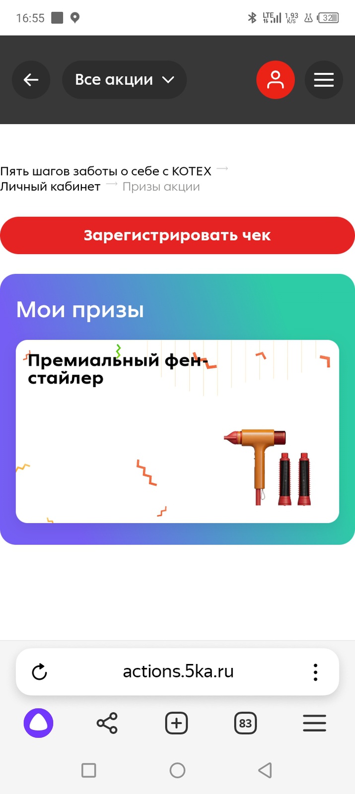 - Зарегистрируйте чек на сайте акции;