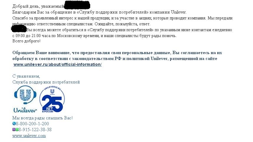 Горячая линия СМ опять отправляет к Юнилеверу