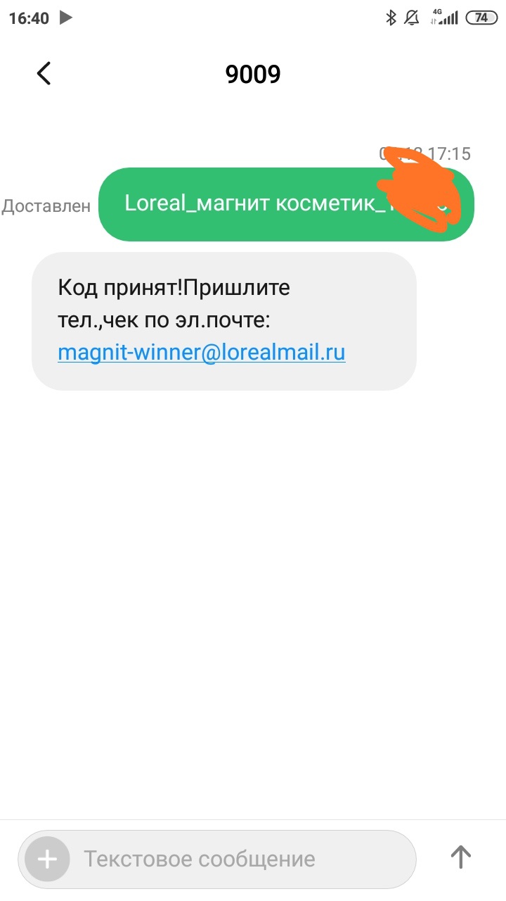- Отправь смс на короткий номер 9009 с префиксом Loreal, названием магазина и номером чека;